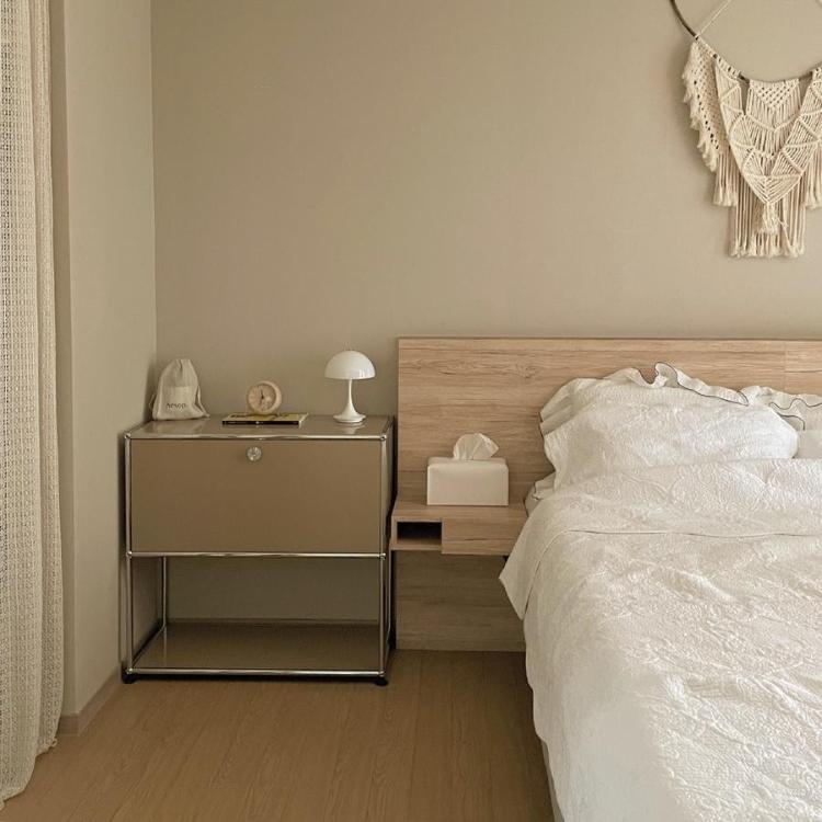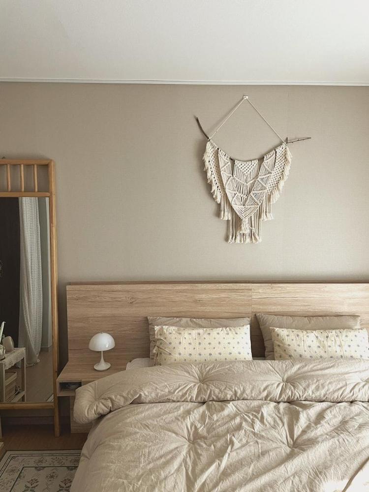 딱 하나뿐인 침대가 우드이다 보니 작은 소품이나 아예 같은 계열의 베이지로 포인트 주고 있어요^^
