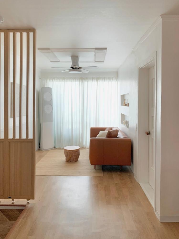 좁은 거실이기 때문에 필요한 것 외에는 아무것도 없는 게 최선이라고 생각해서 벽면에 포인트를 준 건 정말 좋은 선택이었던 것 같아요!