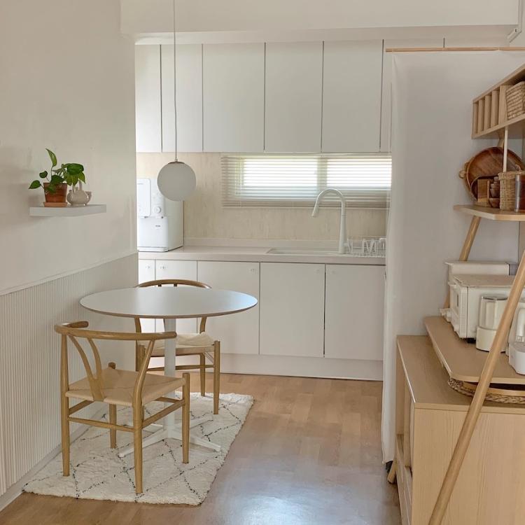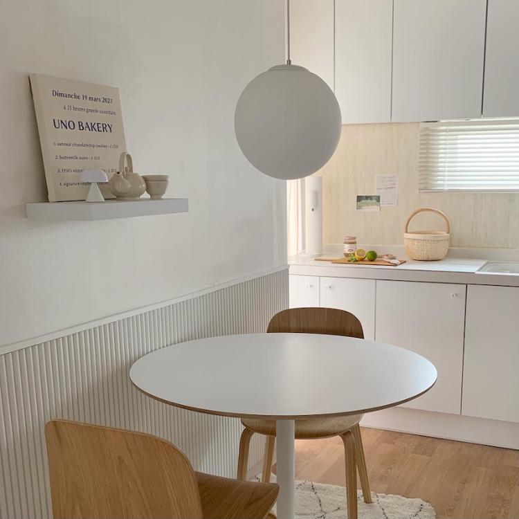 원래 주방조명은 라탄이었는데 어느 카페에서 보았던 달 조명이 너무 예뻐서 우리 집 주방도 바로 실행으로 옮겼어요! 원형 테이블이랑 너무 잘 어울리죠?