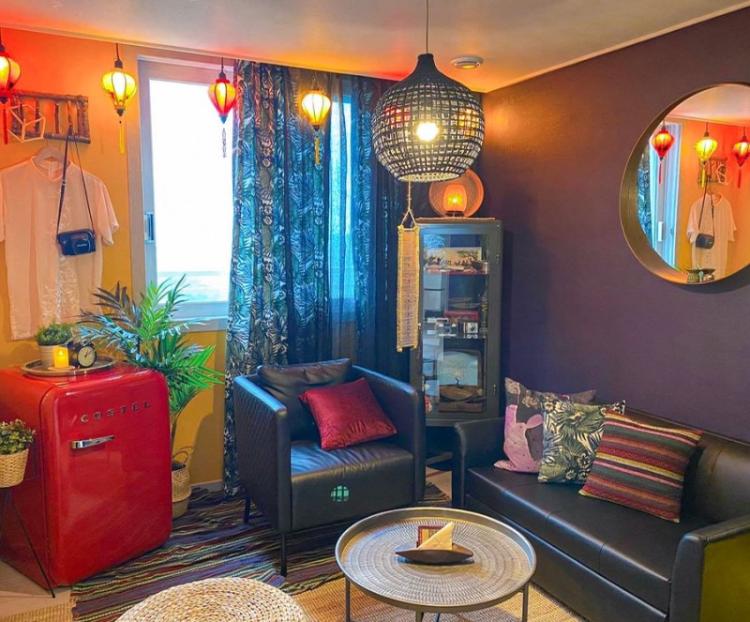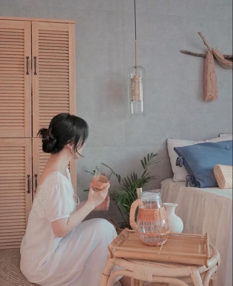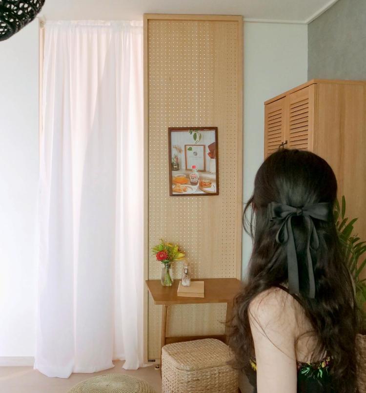 남편과 함께 여행했던 라오스 루앙프라방의 자연 친화적이고 평화로운 분위기에 반해 집을 편안한 동남아 휴양지 느낌이 들 수 있게 꾸미기 시작했어요. 창밖 우거진 숲뷰의 석양이 좋아 지금 살고 있는곳으로 자연스럽게 이사를 오게 되었고요.