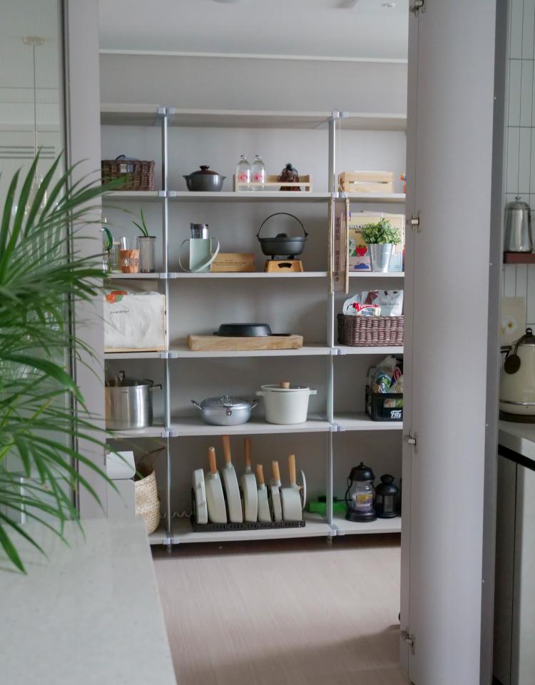 저희집은 많은 것들을 수납할 수 있는 팬트리가 곳곳에 많은 편인데요.그중에서도 메인 팬트리는 바로 주방 옆 이 공간이에요.