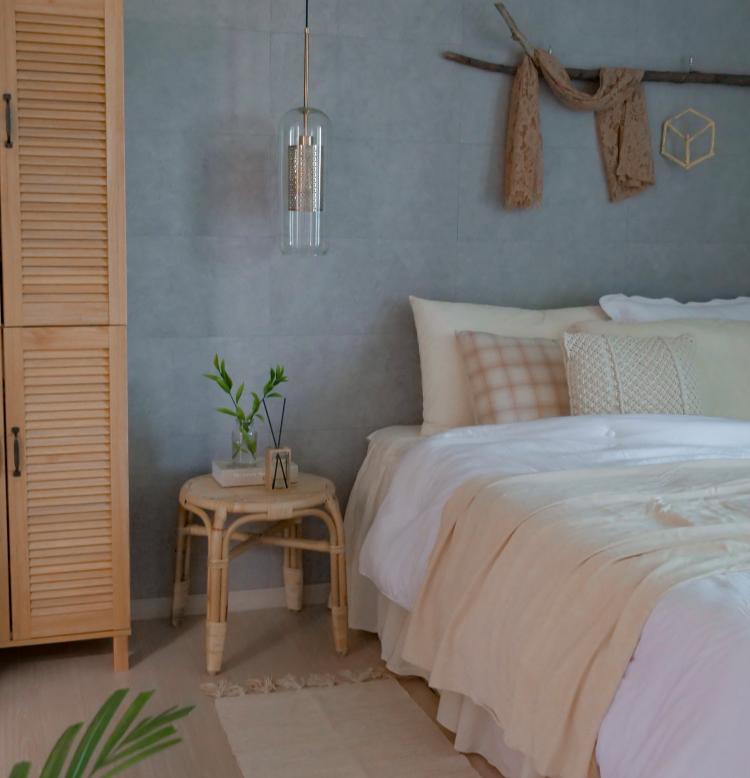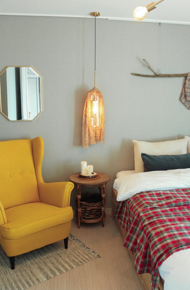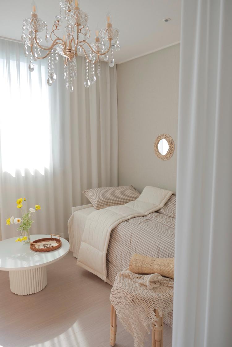 이제 휴양지 감성의 휴식공간 침실 소개로 넘어가 볼게요.침실은 오직 숙면의 목적 때문에 많은 가구를 두지 않고 편안하게 쉴 수 있도록 인테리어를 했어요.