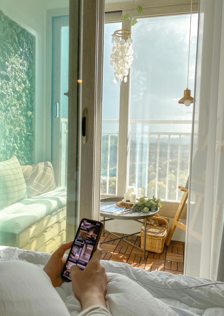 침실도 역시 숲뷰가 멋진 베란다가 붙어있어요. 베란다도 작은 홈카페처럼 꾸며 시간을 보내기도 합니다.