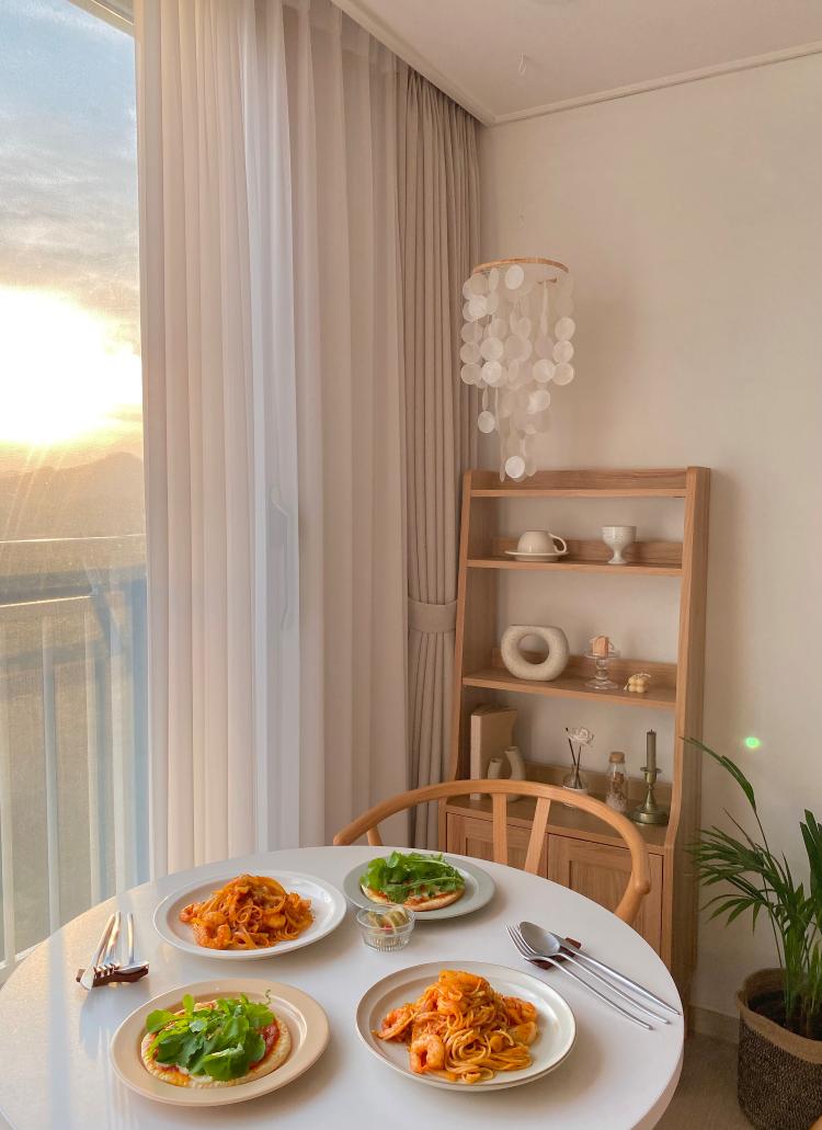 햇살가득 아침에 브런치를 즐기기도 하고 절 위한 남편요리들도 이 테이블에 펼쳐지죠.