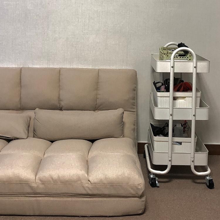 또한 좁은 공간에 필수템인 철제 수납장, 다양한 제품을 넣어도 깔끔하게 정리할 수 있는 공간이 너무 좋은 것 같아요. 디자인도 심플하기 때문에 어디 놓아도 잘 어울린다는 점도 아주 마음에 들어요.