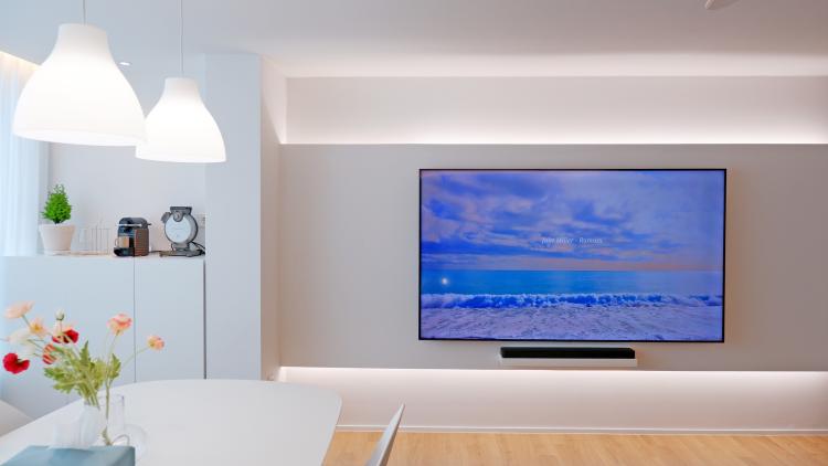 TV 크기를 많이 고민했는데요. 너무 과하지 않을까 생각했던 85인치가 32평인 저희 집에 너무 딱이라 아주 만족하면서 사용하고 있어요.