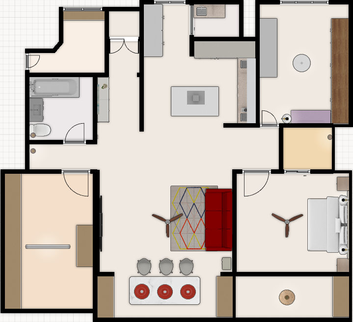각 방의 가구부터 실링팬까지 floorplanner라는 프로그램을 이용했는데 초보자가 사용하기 쉬워 아주 유용했어요 !