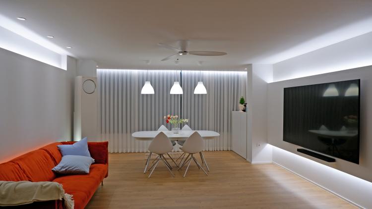특히 거실은 조명 계획에 신경을 많이 써 메인등을 없애고 간접조명만으로 조도를 밝혔어요.