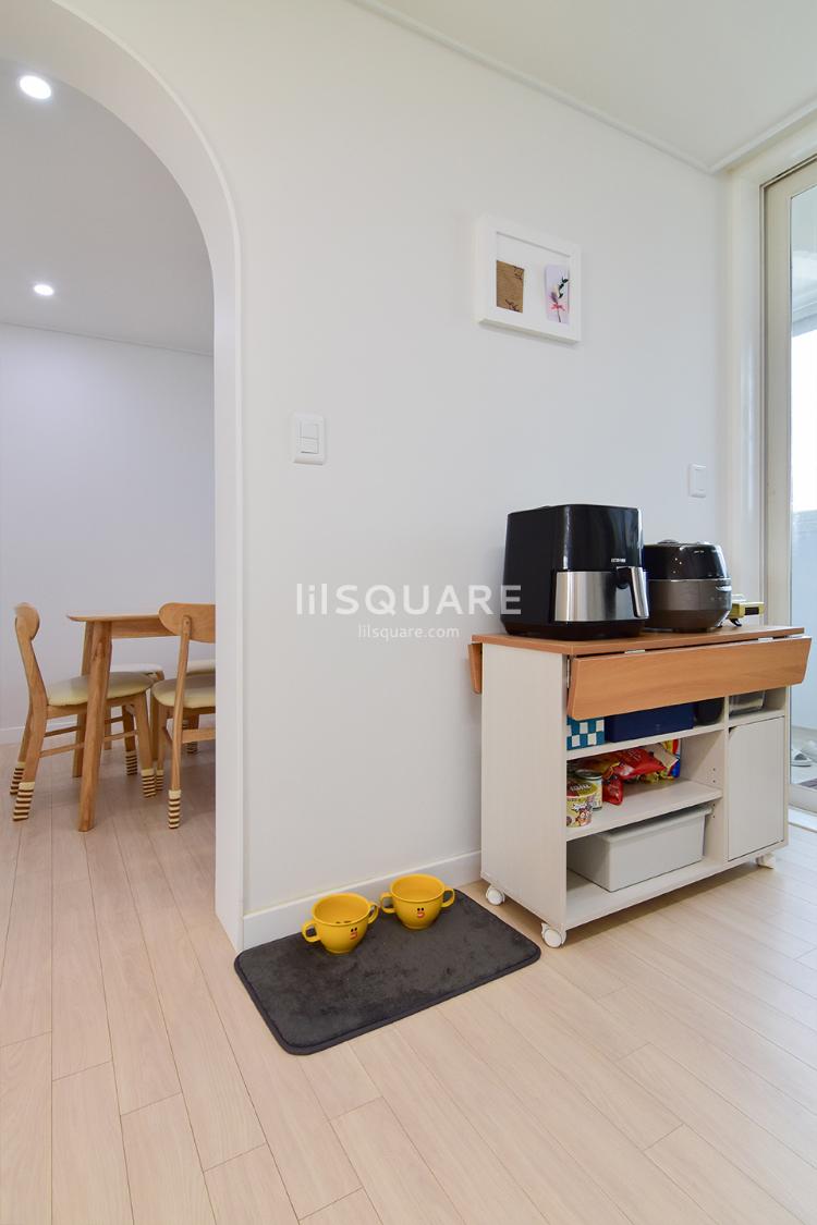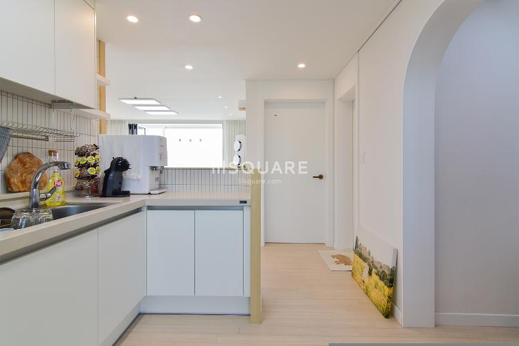 전체적으로 화이트톤의 깔끔한 느낌이 드는 주방입니다ㅎ