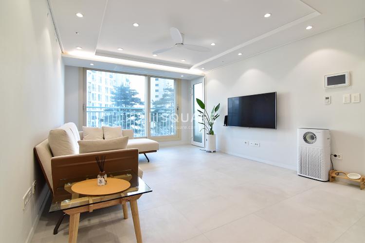 먼저 보여드릴 곳은 거실이에요. 전체적인 톤은 튀지 않으면서 깔끔하고 모던한 뉴트럴톤으로 구성되었어요ㅎ 화이트 컬러와 텐더 그레이 컬러의 바닥이 잘 어우러지네요 :)
