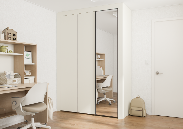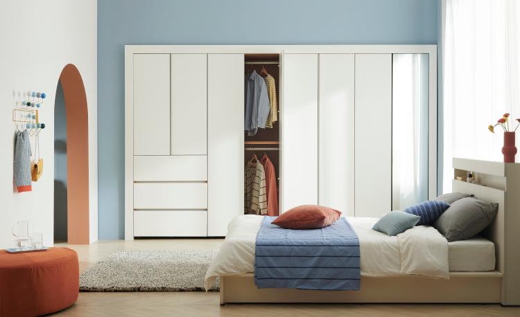 붙박이장을 개발할 때 가장 신경 쓰고 심혈을 기울이는 부분은 ‘도어’, ‘모듈’인데요. 이때 붙박이장의 외관을 결정 짓는 ‘도어’는 한쪽 벽면 전체를 차지하기 때문에 어떤 인테리어와도 조화롭게 어울릴 수 있게 컬러와 디자인에 공을 들였답니다.