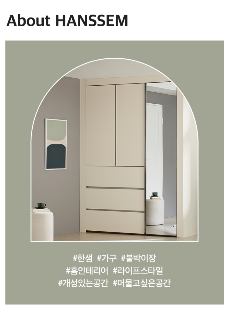 한샘은 다양한 카테고리를 통해 고객님들을 만나 뵙고 있는데요. 그 중 한샘을 대표하는 품목을 하나만 꼽는다면, 자신 있게 붙박이장을 소개해드리고 싶습니다.