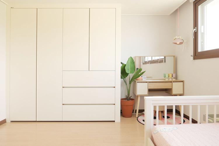 그 다음으로 고려할 부분이 공간 사이즈입니다. 거주 비율이 높은 20-30평형대 평면의 침실에는 240~420cm 붙박이장, 자녀방이나 드레스룸과 같이 작은 방에 설치하고 싶으시다면 240cm 미만의 사이즈를 선택하시면 됩니다.