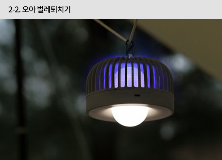 오아 벌레 퇴치기는 해충이 좋아하는 395m 파장의 빛으로 유인 후 전류로 태우는 방식인데요.