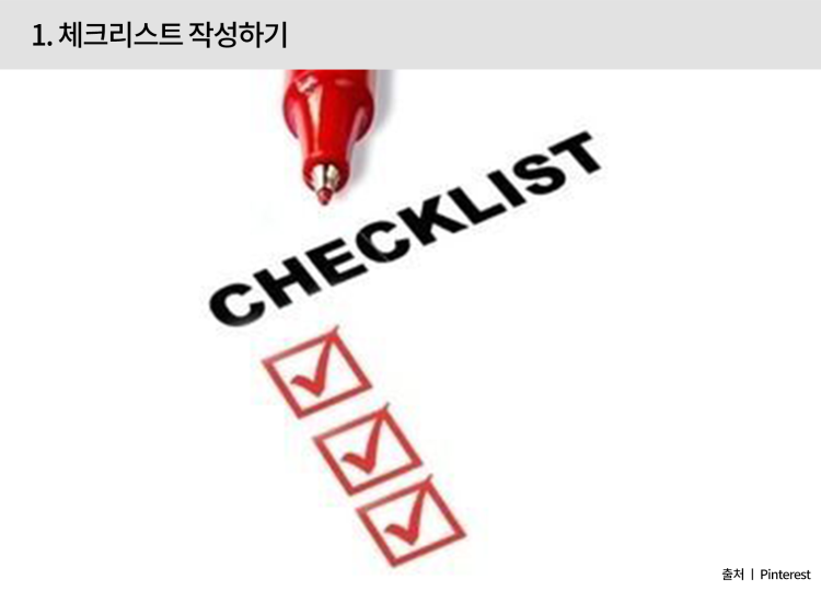 이때 체크리스트가 없다면, 챙겨야 할 물건을 빼먹을 수 있어요.
