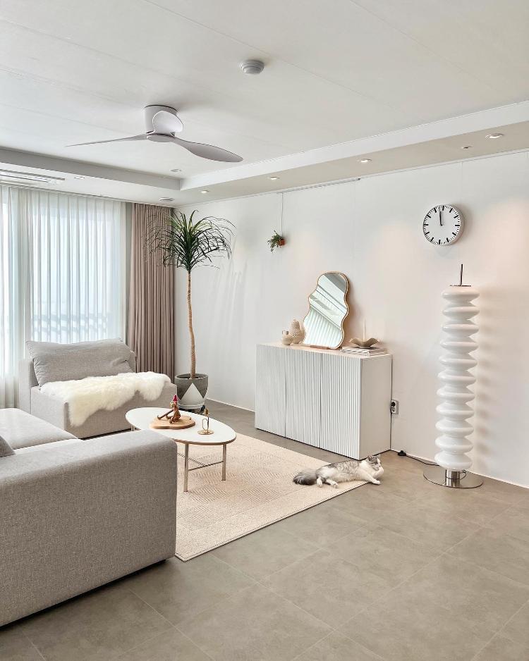 극세사 러그는 바닥의 찬 기운을 막아줄 뿐만 아니라 밋밋한 공간을 채워줍니다.