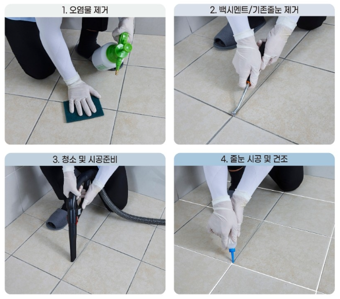 시공 시 오염물과 기존 줄눈을 제거한 뒤 새로운 줄눈으로 깨끗하게 시공해 주십니다.