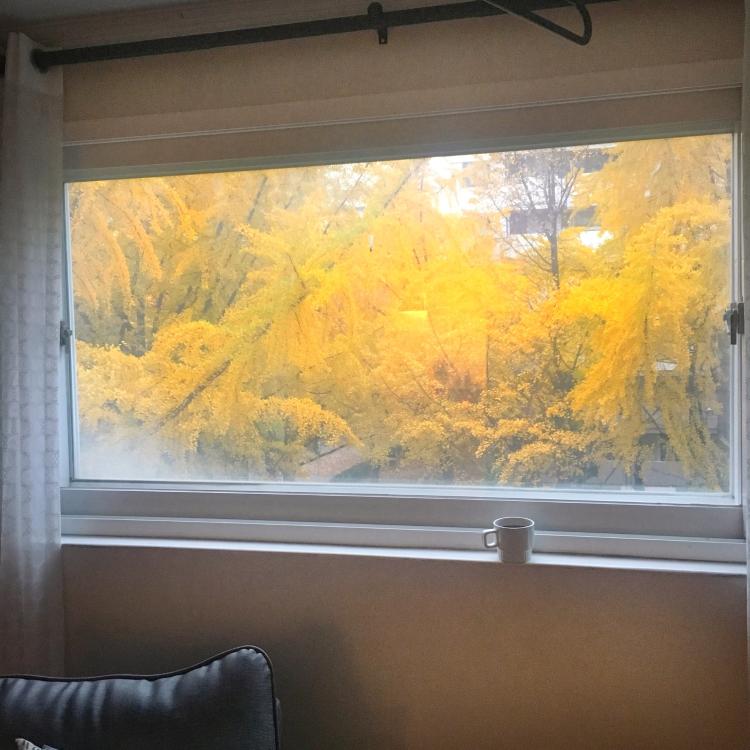 베란다 확장을 하며 창문을 크게 달았더니, 가을엔 은행나무 액자가 봄엔 벚꽃액자가 걸려용😍