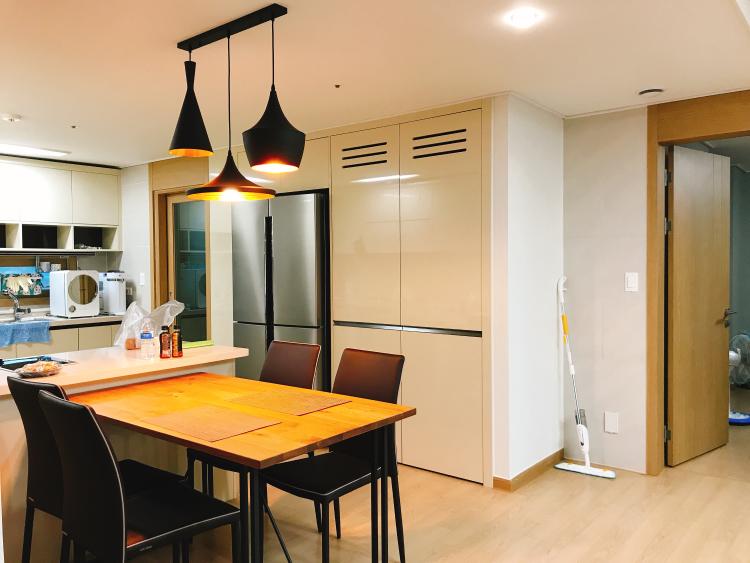 우드식탁이 어울리는 조명등입니다, 분위기 있는 주방을 만들어보았어요
