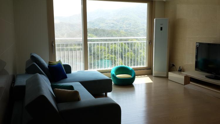 저희집 거실풍경입니다 거실창밖이 푸른 산이 보이는지라 참 마음이 편안해지네요