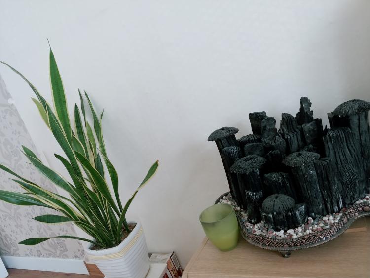 침대옆 숯이랑 산세베리아예요