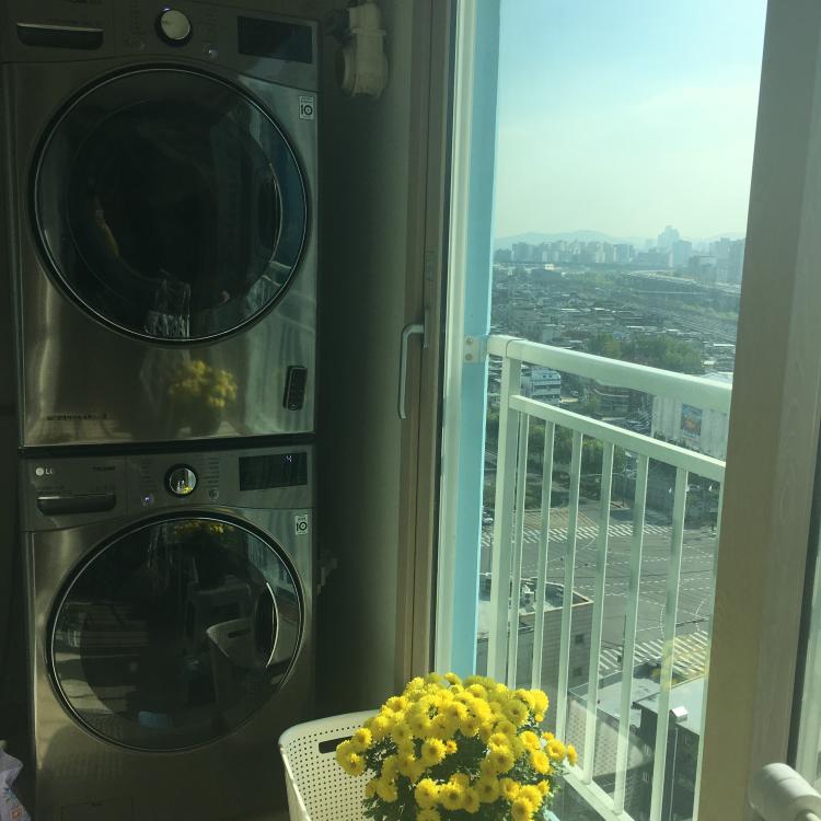 건조기와 세탁기가있는 베란다예요