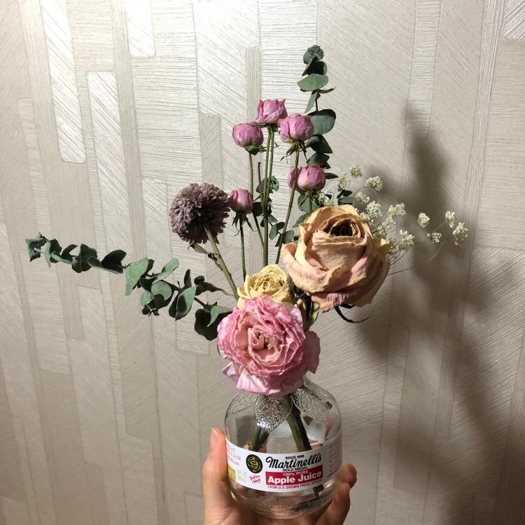 꽃다발 말려서 음료수 병에 꽃았는데 만족스럽워용 ㅎㅎㅎㅎ