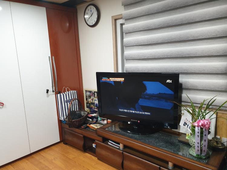 넓은 거실에 넓은 티비를 뙇