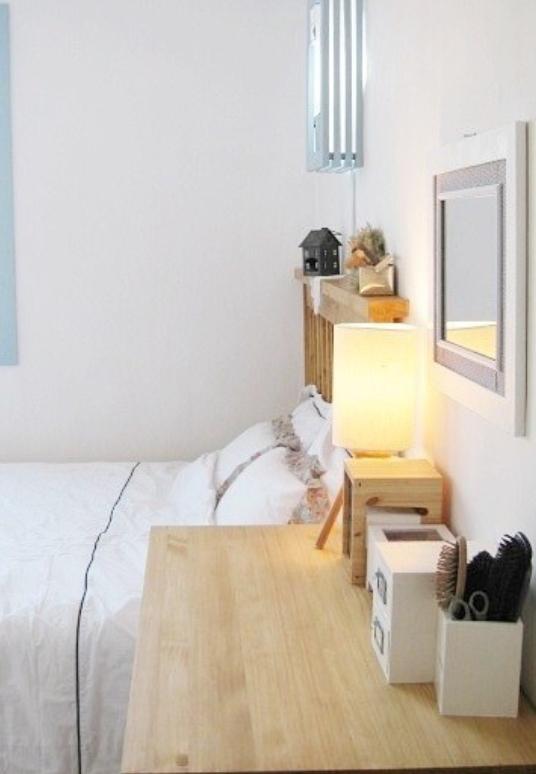 침실의 화장대 옆 모습입니다