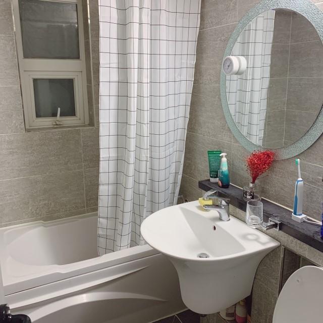 욕실커튼을 다니 물도 안 튀기고 인테리어 효과도 있어요