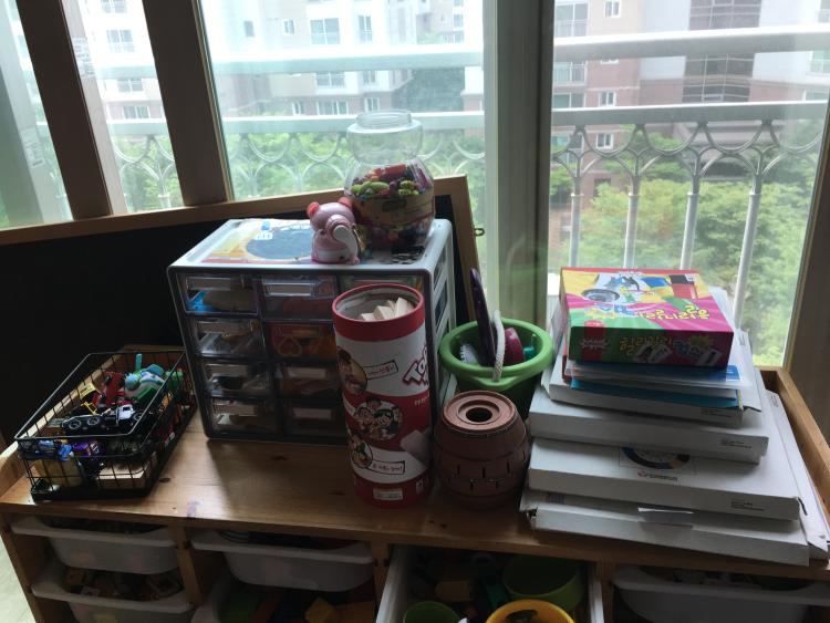 원목서랍장 개조해서 아이 장난감 놓는 용도로 쓰고 있어요