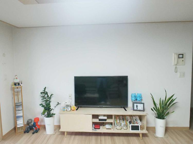 식물이 너무나 커져서 인테리어 화분 구입해서 분갈이해서 티비옆에 딱!!놨네요.