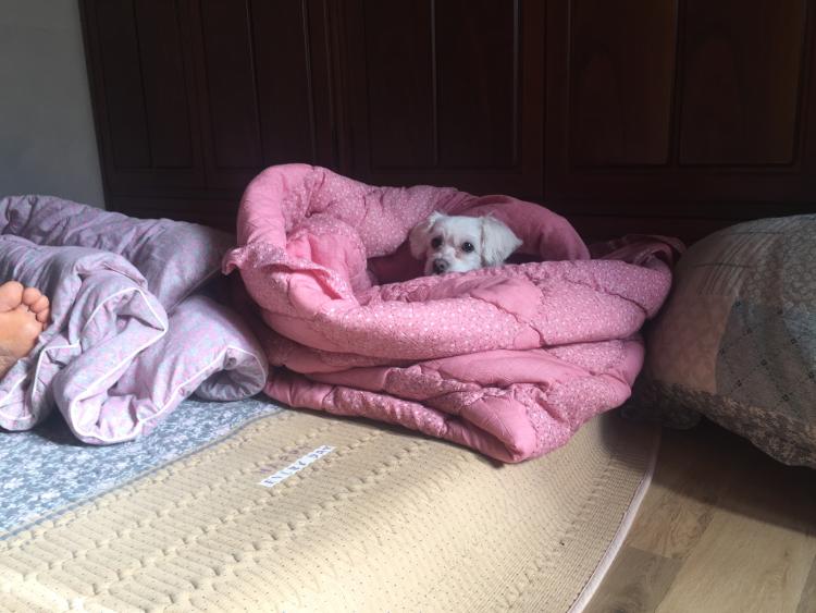씻겨놨더니 추워서 이불 속에 폭 파묻힌.박포리