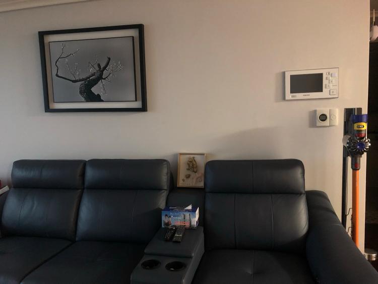 거실에 블루쇼파를 매치해서 조금 영한 느낌을 주었습니다! 바로 옆에는 청소기를 배치하였구요