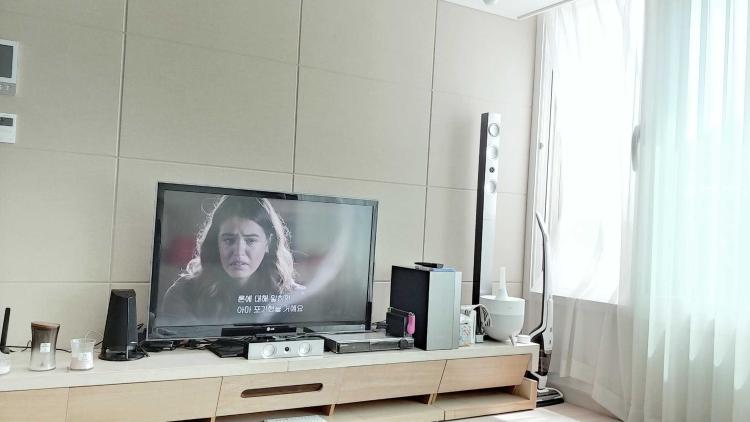 우리집 거실이예요 화이트를 좋아해서 화이트가전제품 좋아해요