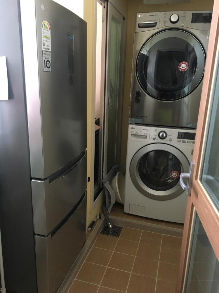 세탁실인데 한쪽 공간에 김치냉장고를 두었어요~