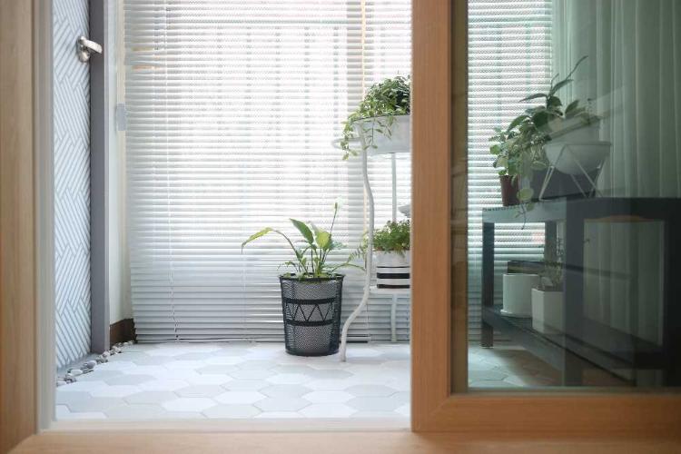 창고로 쓰고 있다가 데코타일 도 깔고 옆에 문도 시트지 붙혀서 화분들 놓고 있어요