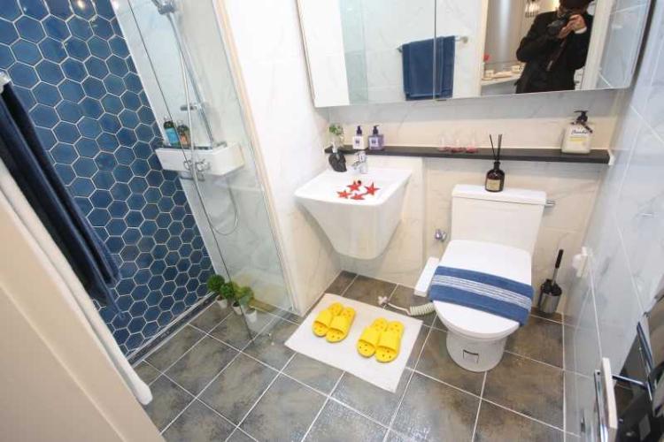 화장실은 좁지만 상큼한 파랑으로 포인트