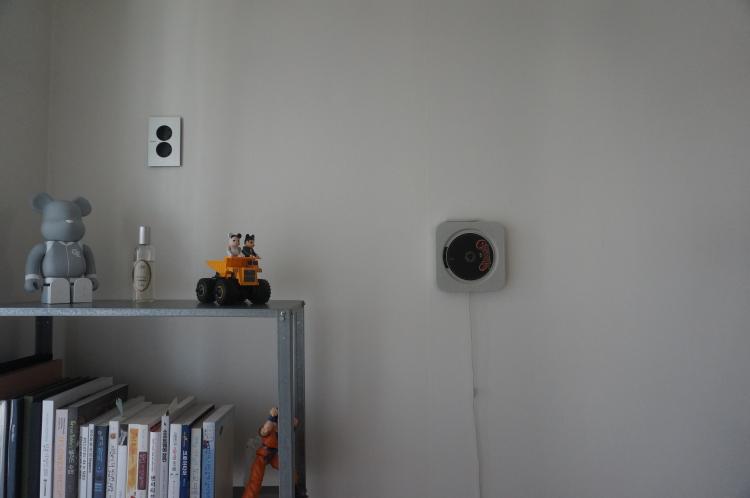 거실 한쪽에는 벽걸이 cdp를 걸어뒀어요. 소파에 앉아 올드팝 들으며 주말을 보내곤 해요.