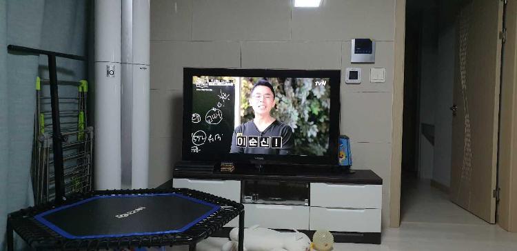 우리집 거실이에요 운동하려고 트램폴린 설치했어요