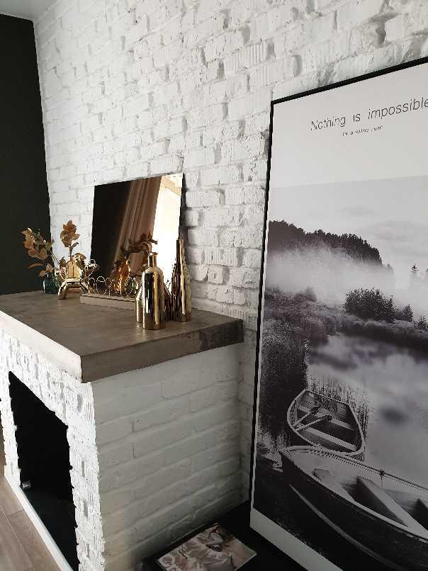 벽난로 윗 공간에 거울과 골드 소품을 놓아서 모던하면서도 세련된 침실