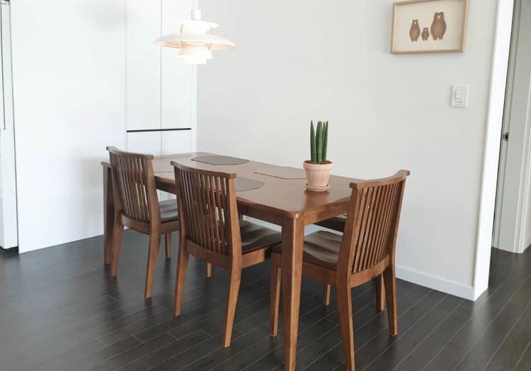 화이트 톤에 원목식탁이 포인트인.주방이에요