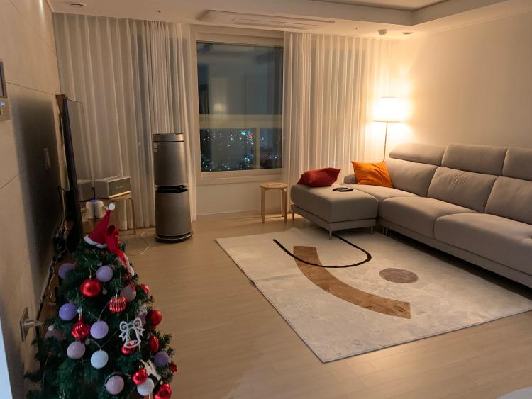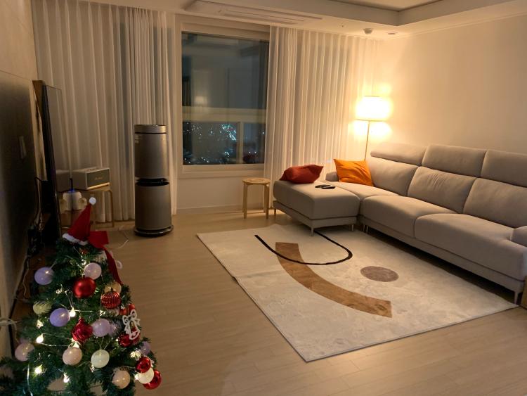 러그와 트리로 더 따뜻하게, 연말느낌 가득하게 꾸몄어요.