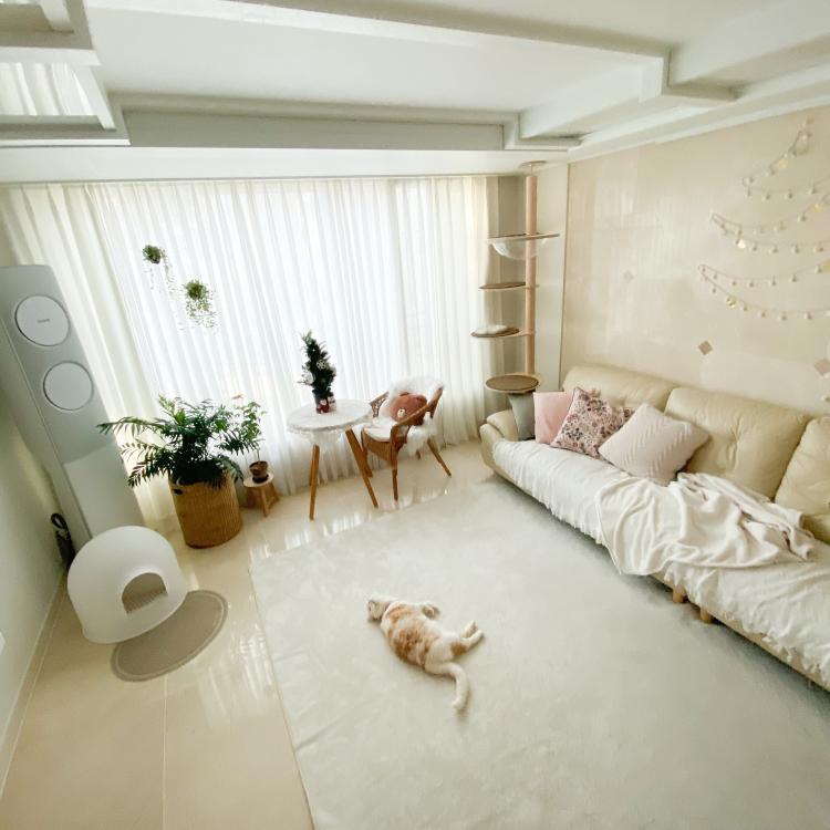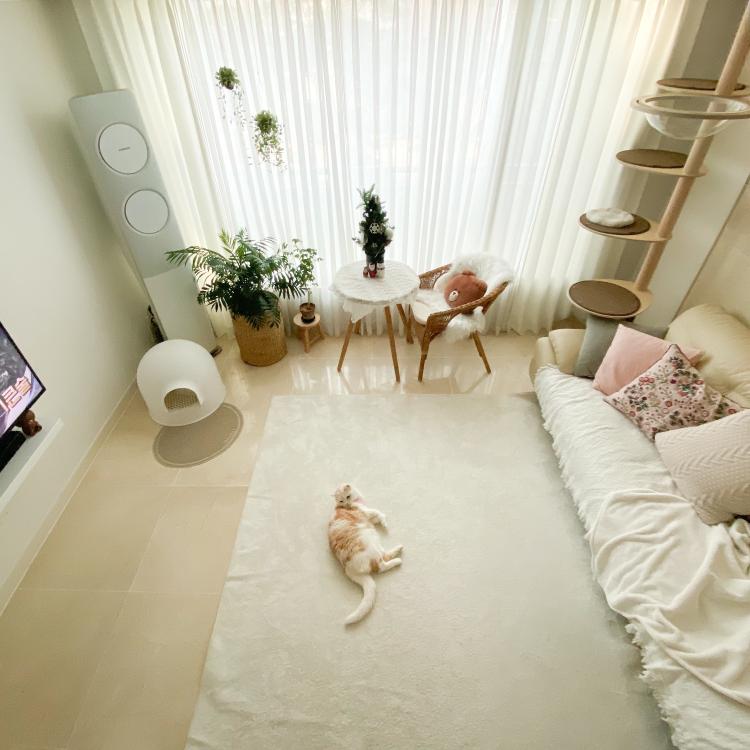 저희집 고양이가 거실 한가운데에 누워있는게 웃겨서 찍었어요.ㅎㅎ 광각모드로 위에서 찍었더니 마치 복층같지 않나요? ^^