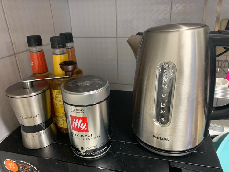주말의 작은 카페 커피포트와 원두분쇄기로 갈아서 일리커피 마시는게 하루 힐링