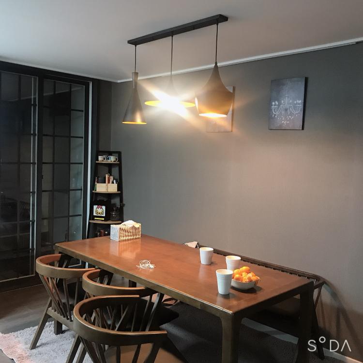 식사도 하고 차 마시며 수다도 떨고 가끔 책도 읽고 공부도 하는 다용도로 사용하는 주방 식탁 공간입니다.