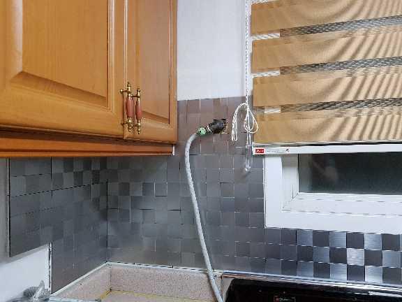 주방 타일 교체는 큰일이라 메탈타일을 사서 직접 붙였어요