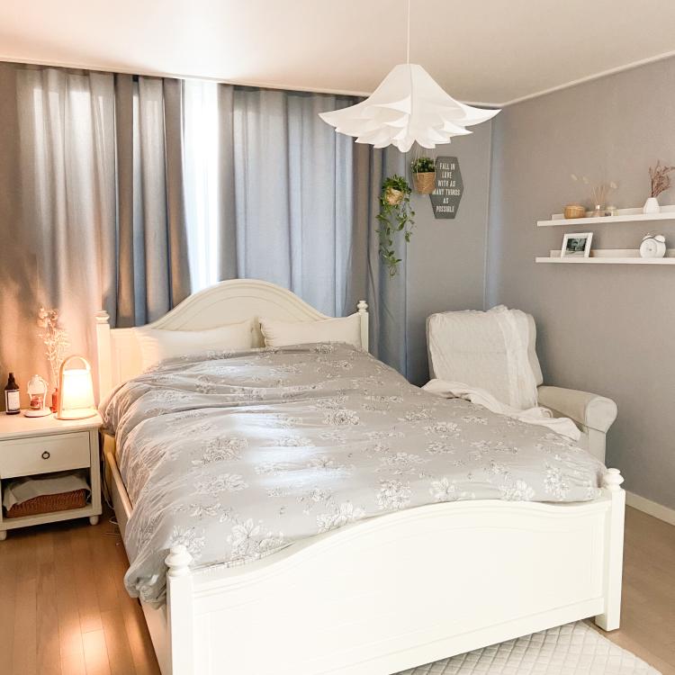 정말 열심히 서치한 덕에 그레이톤으로 차분하게 맞춘 침실과 분위기가 잘 어울려서 다행이에요.
