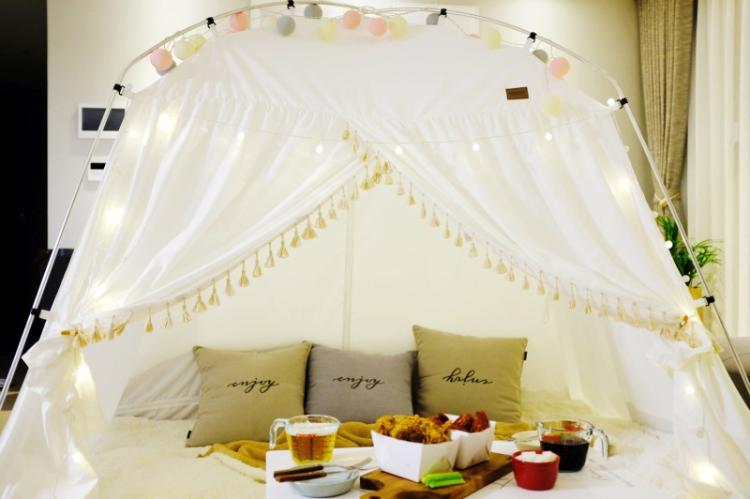 남편과 침실에 있던 베베데코 난방텐트 가져다