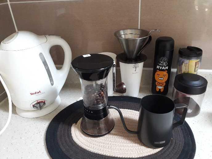 수동으로 커피콩을가는 느낌 나쁘지 않아요.